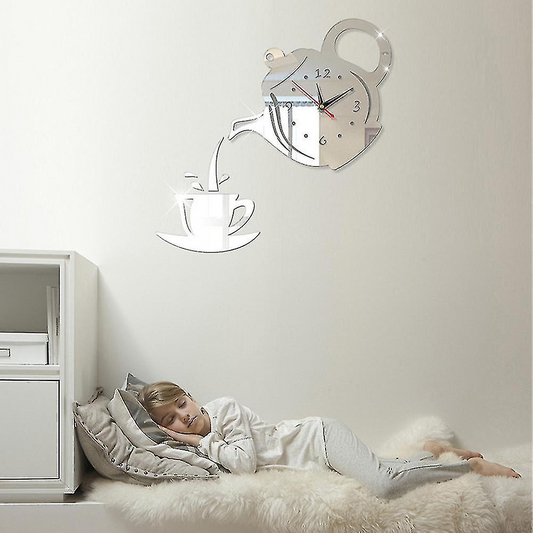 Stickers Muraux - CupTeapotWallClock™- Argent